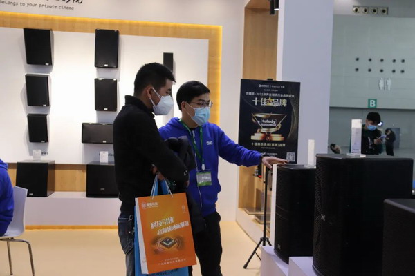 菱杰企業研發團隊根據市場需求,潛心研發,今年展會推出多款線陣新品。EV0-210遠距離投射線聲源音箱,TX-系列線性陣列音箱,AC-5+AC-S曲線恒定音箱,專業功放HD系列,FIR多功能返聽音箱等吸引了不少來賓觀眾的了解,場面十分熱鬧。