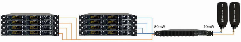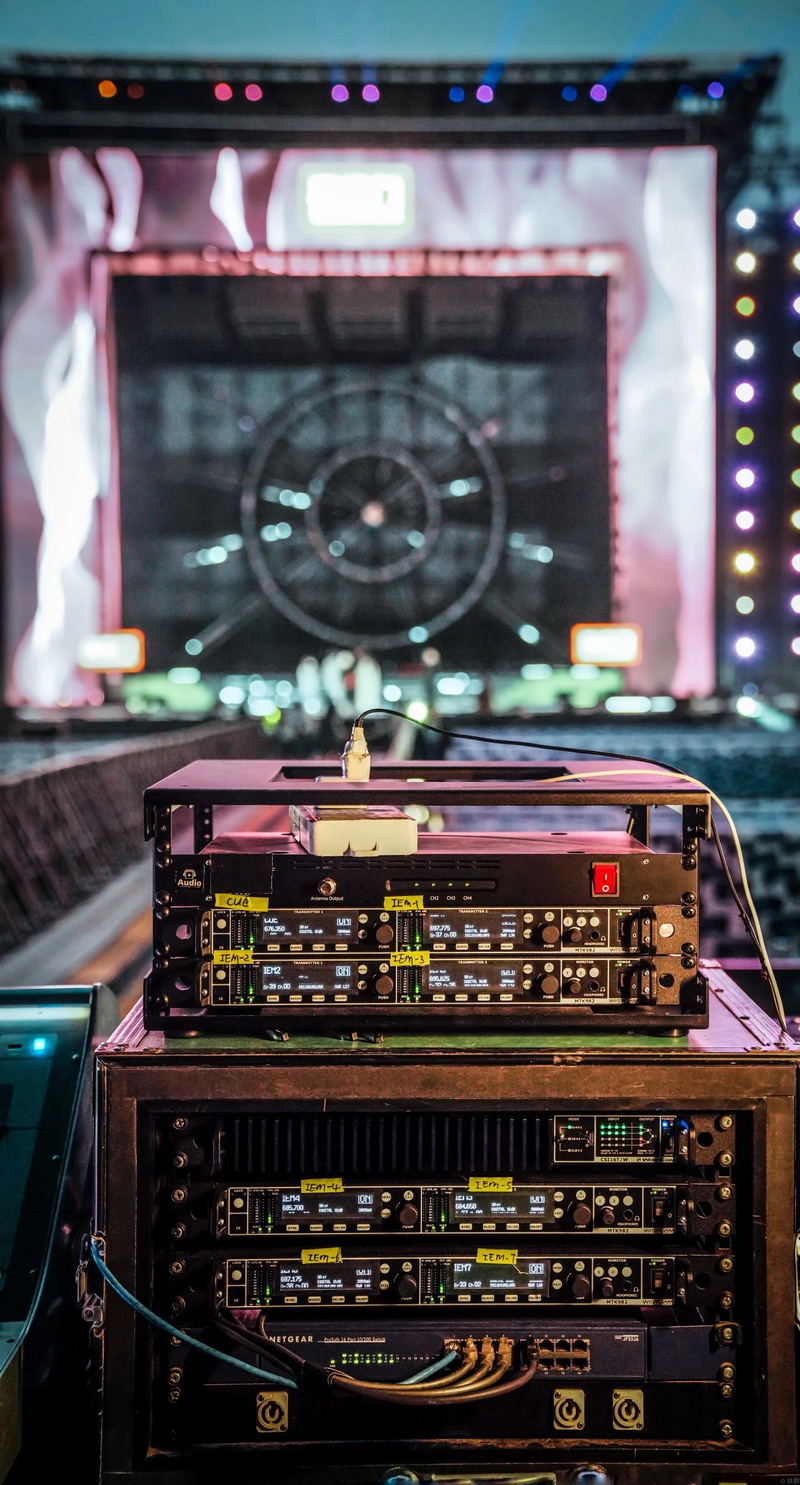 現(xiàn)場(chǎng)Wisycom IEM系統(tǒng)包括4臺(tái) MTK982 雙寬帶發(fā)射器,4套 MPR50-IEM寬帶真分集IEM接收器,2件 LBN2-LNN2 定向天線,2件 ADB2-ADN2 全向天線,1臺(tái) CSI16T 智能無源寬帶合路器,1臺(tái) MAT288 天線匯合。