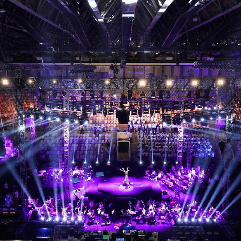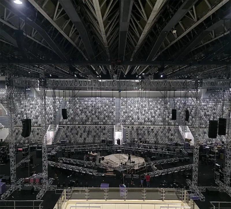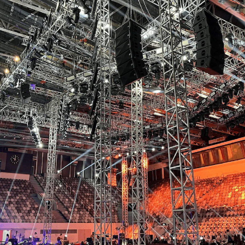 塞納揚體育館特殊的穹頂結構象征印尼傳統“禮帽帽冠”,導致聲波反射強烈,易產生混響延遲。體育館自建成以來歷經多次翻修,現在場內觀眾容量可擴展至8000個座位,如何在實現聲場均勻覆蓋的同時保持音質的清晰與穩定,是對擴聲系統的嚴峻考驗。