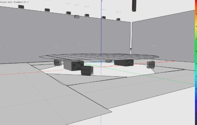短邊兩側(cè)則選用兩只MKD526揚(yáng)聲器,吊掛安裝,憑借120°水平覆蓋與60°垂直指向角,實(shí)現(xiàn)短邊觀眾區(qū)的均勻聲場覆蓋。